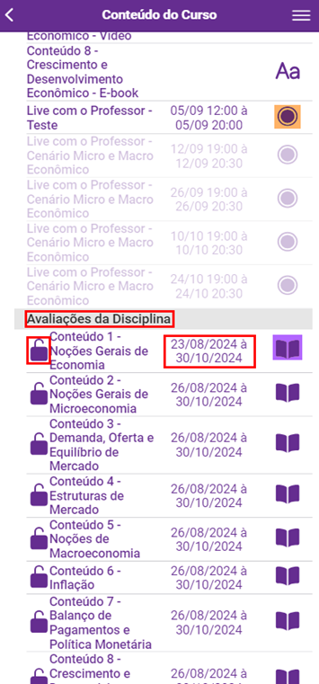 - Laranja: As imagens grifadas de laranja são aulas em formato de live onde assistiremos aulas ao vivo com o professor;