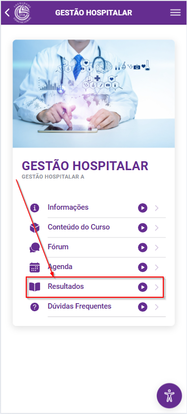 Ao clicar no botão “Resultados” somos direcionados para uma página onde podemos ver todo histórico de atividades de pontuação do curso, desde as atividades que já foram liberadas e avaliadas até as futuras atividades planejadas.